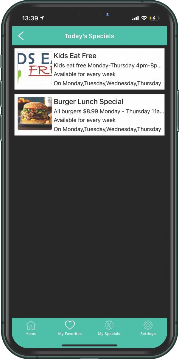 Click on any special to read more about it. You can text, email or post on Social Media so your friends will know where to go.